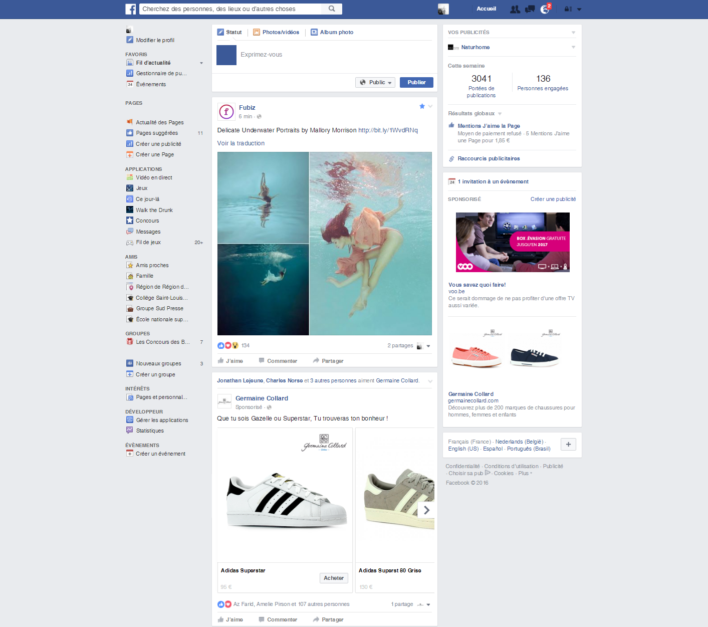 Ces publicités apparaissent soit dans la colonne de droite, soit dans le fil d'actualités de Facebook.